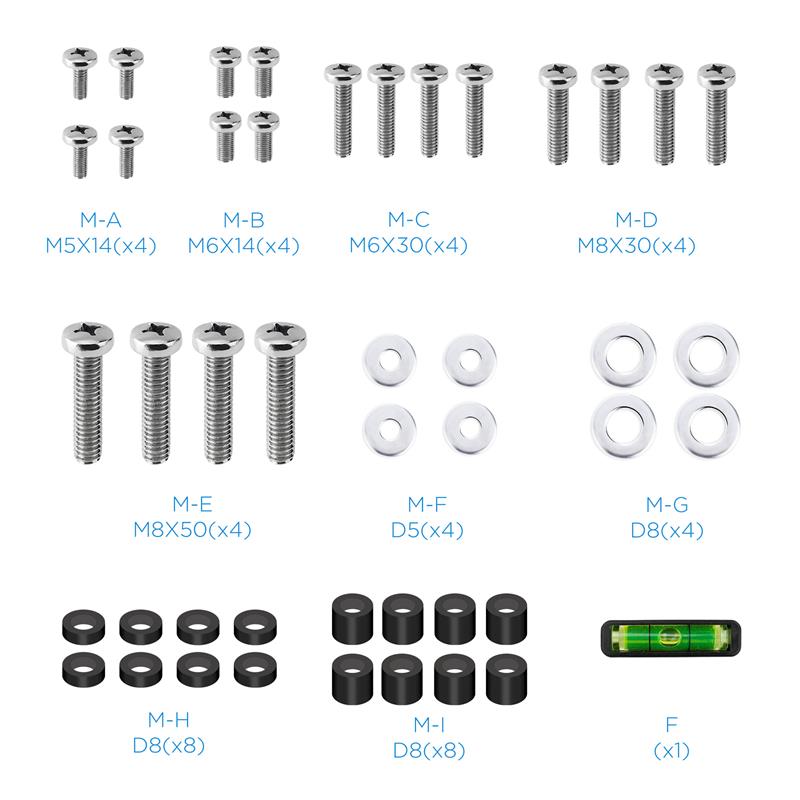 - Contenido del paquete: 1 x Soporte 1 x Kit montaje (incluye herramientas) 1 x Manual de instalación